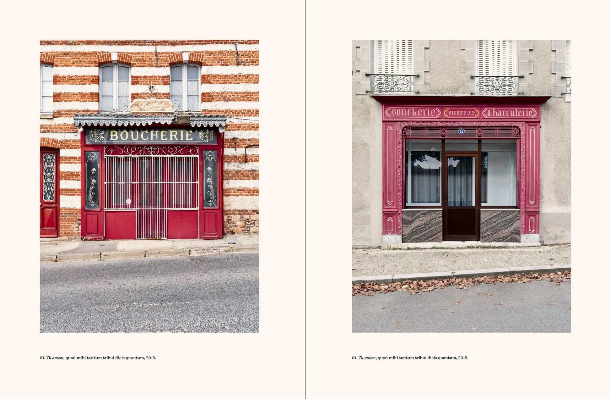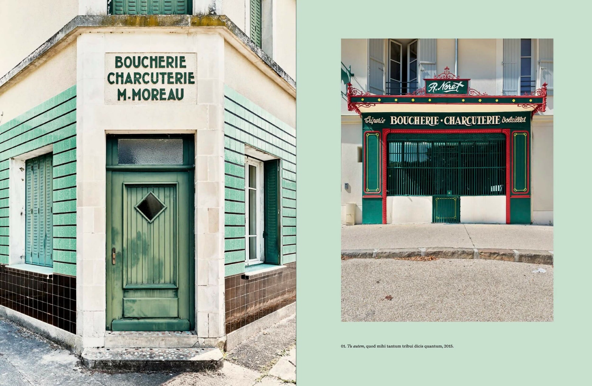 Avec MA FAMILLE EST UNE BOUCHERIE, Franck Tremblay arpente la France à la recherche de façades de boucheries — en activité, fermées, recyclées ou abandonnées.